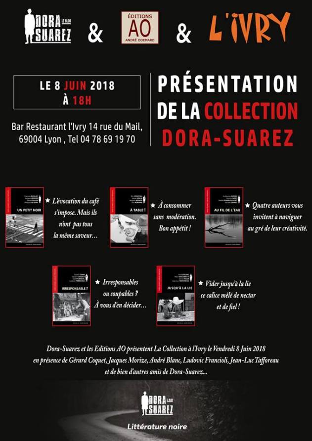 Le vendredi 8 Juin à 18h, rendez-vous à l’Ivry pour une présentation de la collection « Dora-Suarez présente… » aux éditions AO. En présence de l’éditeur et de nombreux auteurs…